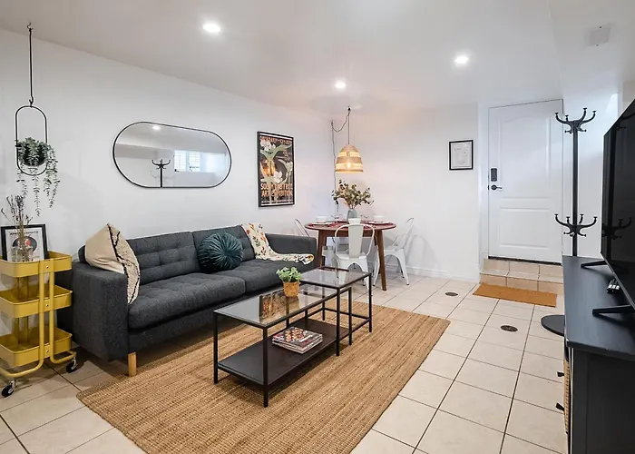 Basement Suite With Private Patio In Davenport lies 3.2 km from the municipal High Park. The city centre is just 2 km away and Billy Bishop Toronto City airport is 10 km from this apartment. The 42 m^2 Basement Suite With Private Patio In Davenport is also located on the doorstep of Dufferin Street Baptist Church.